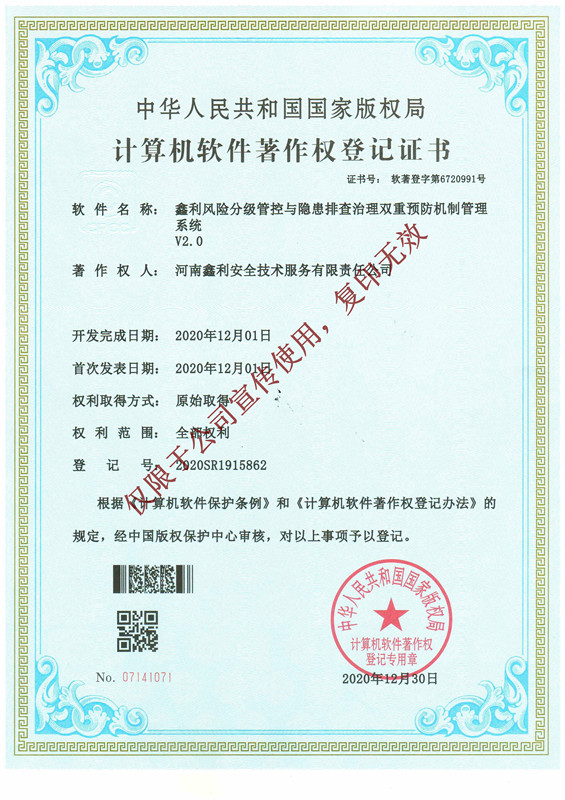 鑫利風(fēng)險(xiǎn)分級(jí)管控與隱患排查治理雙重預(yù)防機(jī)制管理系統(tǒng)軟件著作權(quán)登記證書(shū)