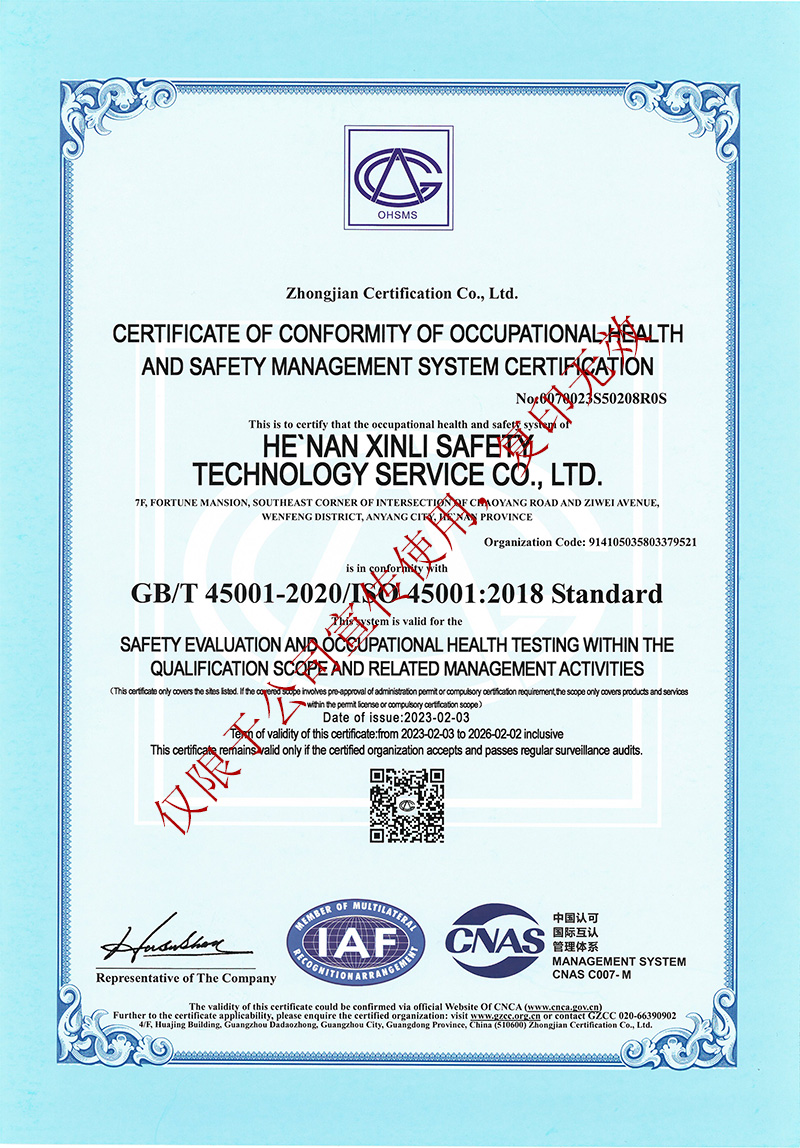 職業(yè)健康安全管理體系認(rèn)證證書(shū)