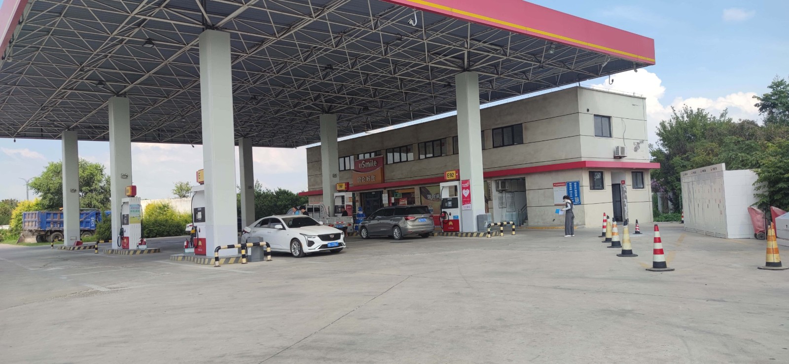 項目簡介 | 中國石油天然氣股份有限公司河南鄢陵第十二加油站 位于鄢陵縣金瑞大道與花博大道交叉口東南角,《危險化學品經營許可證》(豫K?;涀帧?022】000190號)有效期限至2025年09月04日,許可范圍:乙醇汽油、柴油(閉杯閃點≤60℃)。 加油站占地面積為2631m2,有員工3人,其中安全生產管理人員1人,無特種作業(yè)人員。加油站設有4臺加油機,有地埋式儲油罐4座(FF雙層油罐),其中2座30m3乙醇汽油罐、2座30m3柴油罐(柴油折半計入),總容積為90m3。根據GB50156-2021《汽車加油加氣加氫站技術標準》第3.0.9條對加油站的等級劃分,該加油站為二級加油站。該加油站加油采用自吸式加油工藝,汽油設備設置有加油和卸油油氣回收系統(tǒng)。 | |||