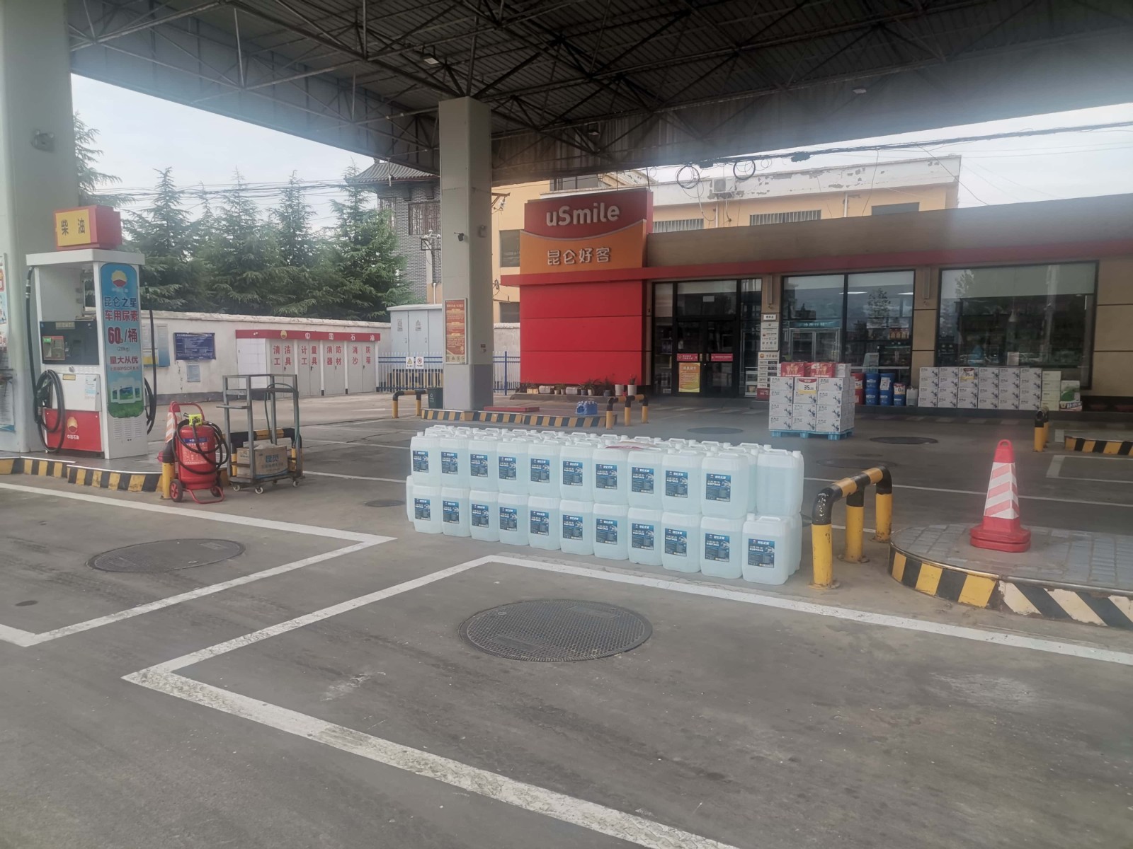 項(xiàng)目簡(jiǎn)介 | 中國(guó)石油天然氣股份有限公司河南宜陽(yáng)第三加油站位于河南省洛陽(yáng)市宜陽(yáng)縣韓城鎮(zhèn)官西村S318省道與南車線交叉口東北角。該加油站占地面積2068.3m2,現(xiàn)有員工4人,其中安全生產(chǎn)管理人員1人,無(wú)特種作業(yè)人員;《危險(xiǎn)化學(xué)品經(jīng)營(yíng)許可證》(證書(shū)編號(hào):洛宜?;?jīng)字[2023]000001號(hào)),有效期限至2025年11月03日,許可范圍:車用乙醇汽油、柴油。 該加油站站房設(shè)在站區(qū)北側(cè),站房西側(cè)設(shè)置一臺(tái)箱式變壓器,罩棚布置在站房南側(cè),在罩棚下設(shè)3臺(tái)加油機(jī),分兩排平行布置,安裝在加油島上;罐區(qū)有4座雙層FF臥式油罐,埋地設(shè)在罩棚行車道下,其中30m3汽油罐2座、30m3柴油罐2座;密閉卸油口設(shè)置在罩棚南側(cè)。根據(jù)GB50156-2021《汽車加油加氣加氫站技術(shù)標(biāo)準(zhǔn)》表3.0.9加油站的等級(jí)劃分,該站油罐總?cè)莘e為30×2+30×2×1/2 =90m3(柴油折半計(jì)入),屬于三級(jí)加油站。該站采用自吸式加油工藝,設(shè)有加油、卸油油氣回收系統(tǒng)。 加油站東側(cè)為韓城鎮(zhèn)消防專職救援隊(duì)(按三類保護(hù)物計(jì));南側(cè)為G343國(guó)道(八官線)、架空電力線(有絕緣層);西側(cè)為S242省道;北側(cè)為架空通信線、民房(按三類保護(hù)物計(jì))、屋頂變壓器(按丙類物品生產(chǎn)廠房計(jì))。站內(nèi)汽油、柴油工藝設(shè)備與站外建構(gòu)筑物的安全間距均符合GB50156-2021的要求。該加油站站內(nèi)設(shè)施的防火間距滿足要求。 | |||